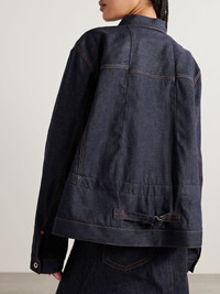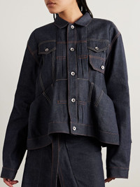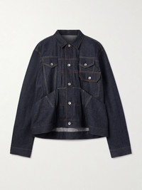 Leave it to Sacai to make something as classic as a denim jacket feel cool and unexpected. Traced with two-toned contrast topstitching, it's cut in a boxy shape in a dark-blue wash and fitted with multiple pockets, including two oversized slip ones at the waist. Size & Fit - Size 1 = XS, 2 = S, 3 = M, 4 = L - Fits true to size, take your normal size - Intended for a boxy fit, cut to be worn loose - Mid-weight, non-stretchy denim - Model is 177cm/ 5'10" and is wearing the designer's size 2 Model measurements: - Bust: 81cm/ 31.75" - Waist: 63cm/ 24.75" - Hip: 91cm/ 36" Details & Care - Dark-blue denim - Button fastenings through front - 100% cotton