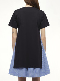 Poplin x Cotton Jersey Dress in Navy/Blue Stripe