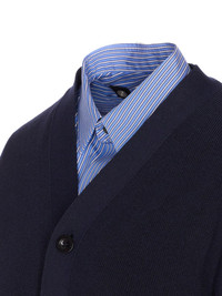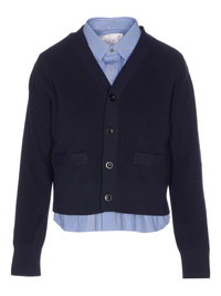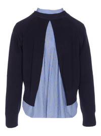 button-front striped shirt cardigan Highlights - Navy blue - Striped shirt detail - Button front fastening - Long sleeves - Ribbed knit - Front welt pockets Imported Composition Cotton 100% Washing instructions Read Manufacturer Guidelines