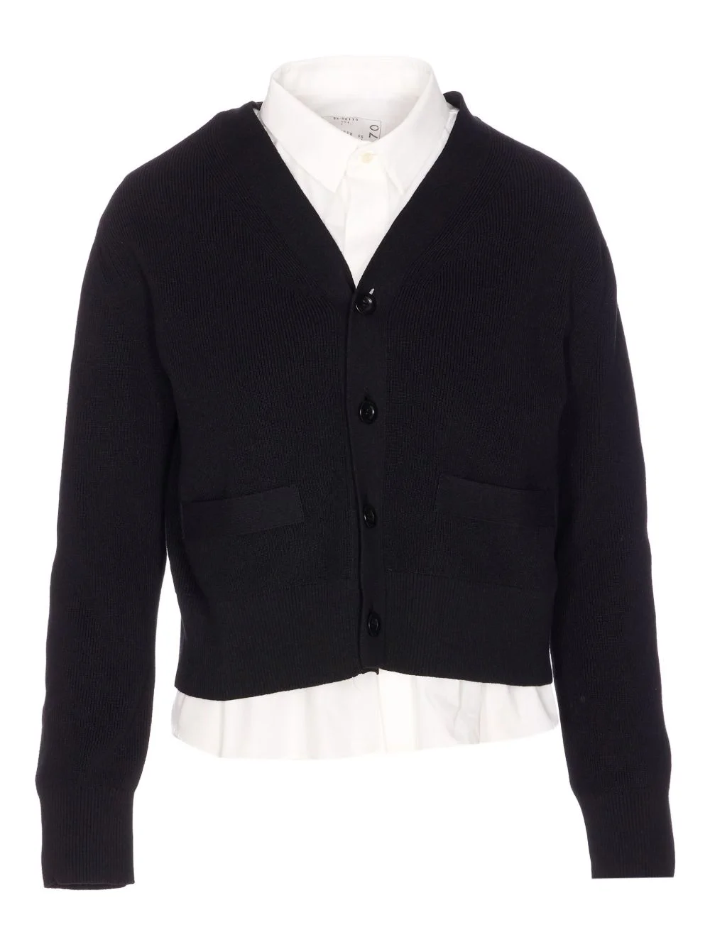 button-front knitted cardigan Highlights - Black - Ribbed knit - Front weltpockets - Button closure - Long sleeves - Layered shirt detail Imported Composition Cotton 100% Washing instructions Read Manufacturer Guidelines