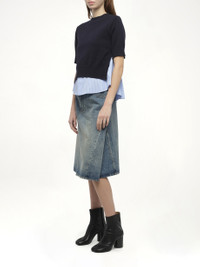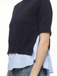 Poplin x Knit Pullover in Navy/Light Blue Stripe