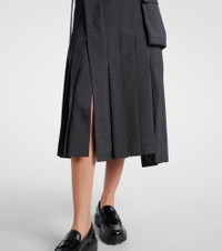 Add this refined midi skirt from Sacai to your everyday rotation. Knitted from wool with a Prince of Wales check pattern, the style comes in a wrap-inspired silhouette and is complete with elegant pleats. Product Details - Material: 100% wool - Care instructions: dry clean - Made in Japan - Designer color name: Gray - Item color: gray - Lining: 100% cupro - Attached belt - Pockets: cargo pocket - Closure: zip and button fastening - Item number: P01066713 Size & Fit - True to size - Non-stretchy fabric - The model seen in the picture is 178cm-5'10" and wearing a size 1