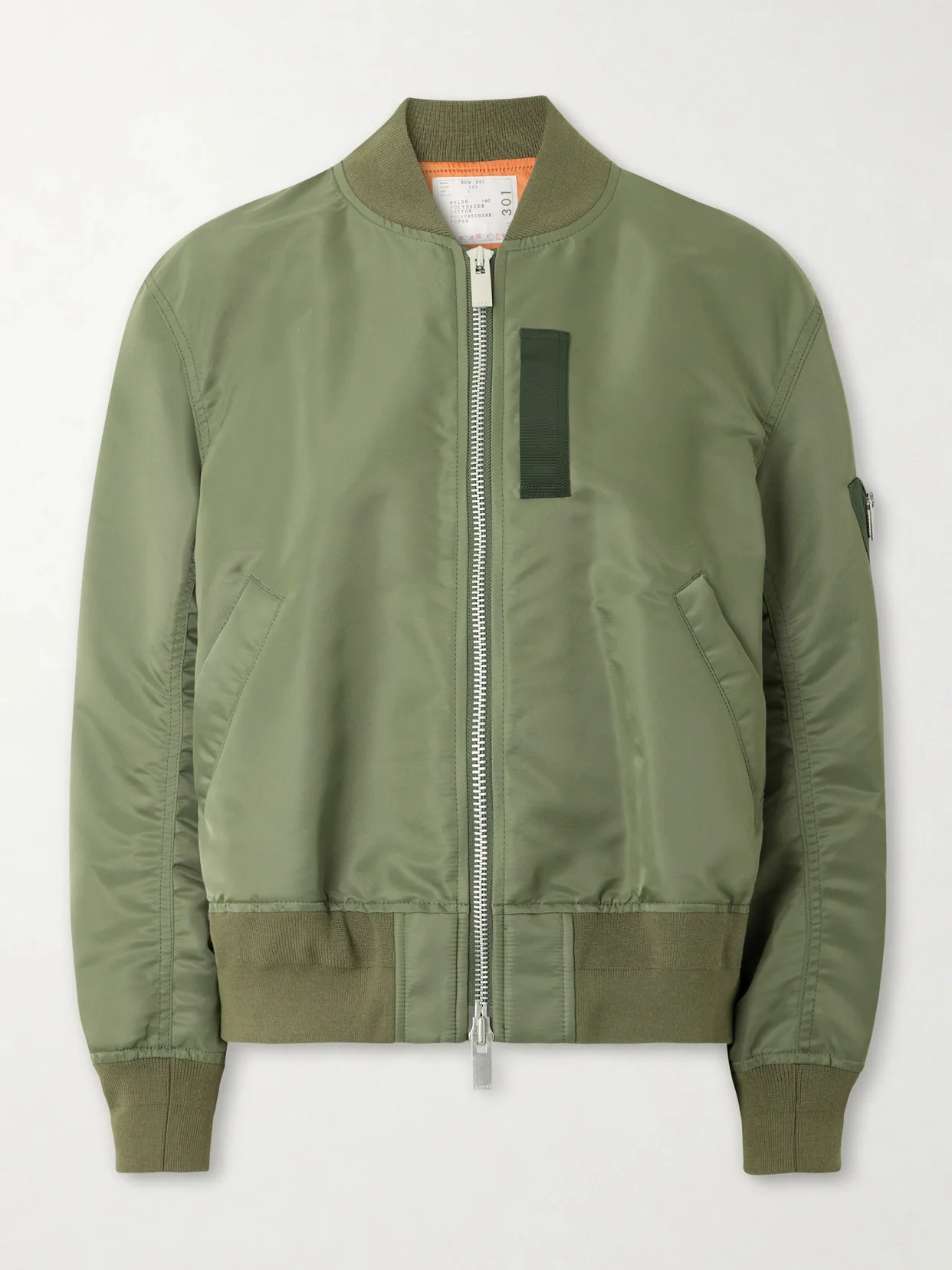 Sacai understands the importance of the classics, but also the importance of playing on them. This bomber jacket is made from shell with several hallmarks of traditional styles, like the short collar, ribbed trims and sleeve pocket. The deep, inverted pleat at the back, meanwhile, changes up and modernizes the overall shape.