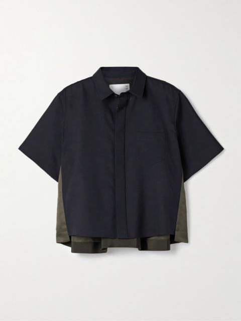EDITORS'NOTES Innovative fabric combinations and unexpected silhouettes make Sacai's pieces feel so unique. Made from black chiffon, this blouse is trimmed with satin ruffles through the front to enhance its floaty shape. Complement the high neckline with chunky earrings. SIZE & FIT Model measurements: - Size 1 = XS, 2 = S, 3 = M, 4 = L - Fits true to size, take your normal size - Designed for a slightly loose fit - Lightweight, semi-sheer, non-stretchy fabric - Model is 177cm/ 5'10" and is wearing the designer's size 2 - Bust: 80cm/ 31.5" - Waist: 60cm/ 23.5" - Hip: 89cm/ 35" DETAILS & CARE - Black chiffon and satin - Concealed snap and zip fastening at back - 100% polyester - Dry clean