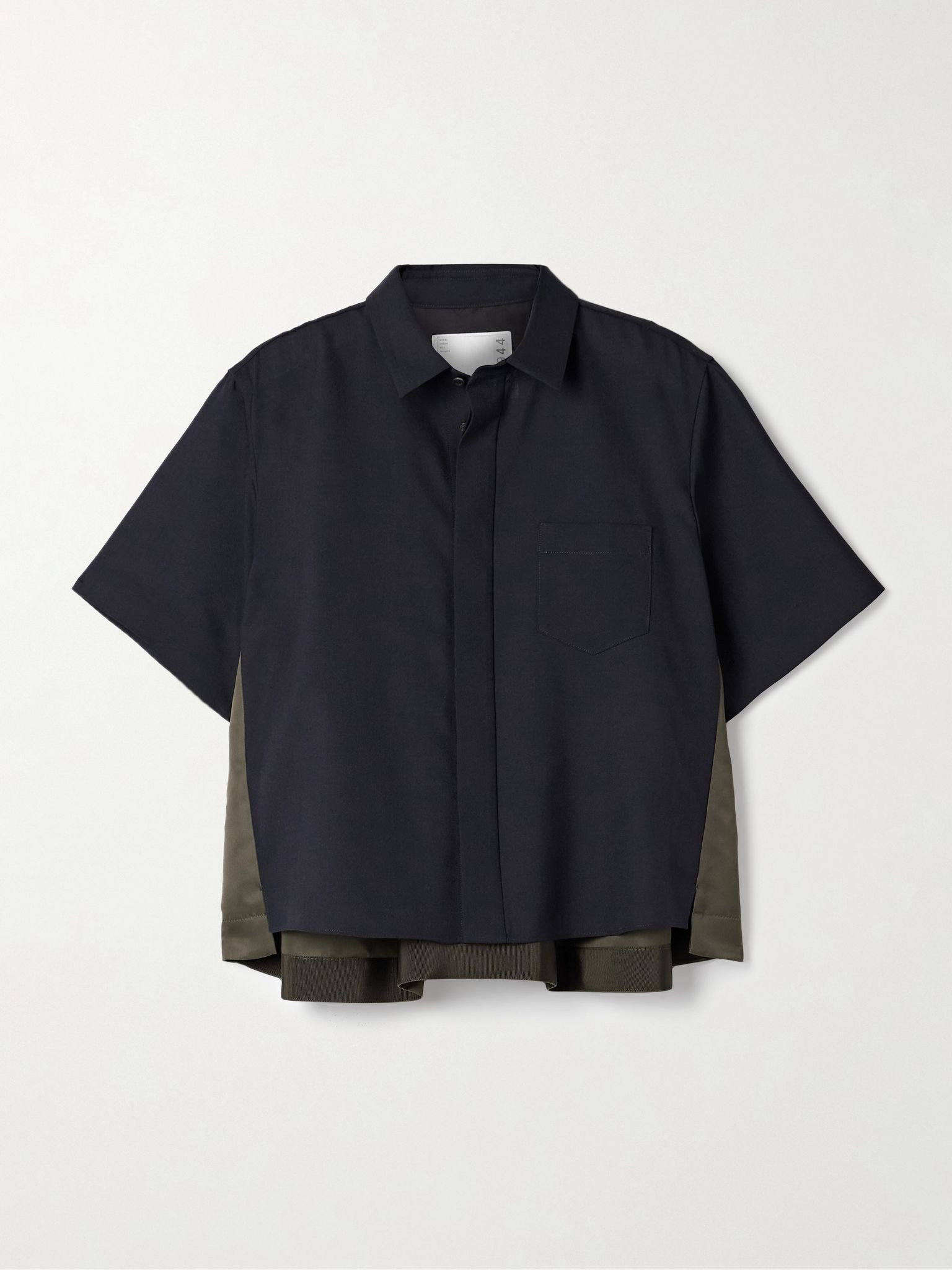 Sacai loves experimenting with fabric and texture to create clothing that feels truly distinct. This shirt is made from panels of midnight-blue cotton and army-green shell and has a covered placket for a neat finish. The back hem is reinforced for subtle structure. Size & Fit - Size 1 = XS, 2 = S, 3 = M, 4 = L - Fits true to size, take your normal size - Intended for a loose fit - Mid-weight, non-stretchy denim - Model is 175cm/ 5'9" and is wearing the designer's size 2 Details & Care - Midnight-blue cotton, army-green shell - Partially concealed button fastenings through front - Fabric1: 100% cotton; fabric2: 100% nylon