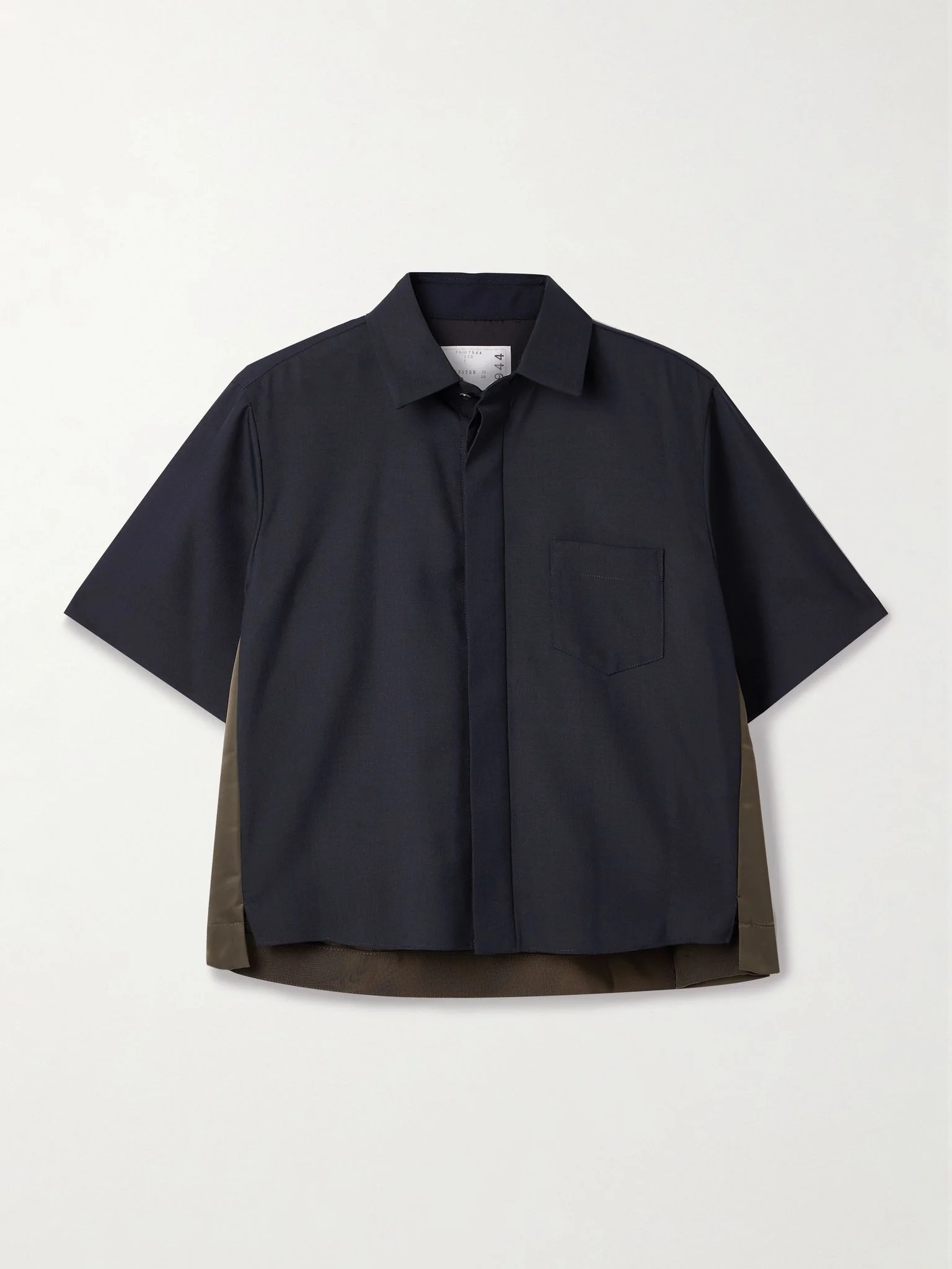 Sacai's clothing is renowned for its juxtaposing elements, which always result in really unique pieces. This shirt is made from panels of crepe and shell in a loose, boxy profile with a single chest pocket and side splits. Size & Fit - Size 1 = XS, 2 = S, 3 = M, 4 = L - Fits true to size, take your normal size - Intended for a boxy fit, cut to be worn loose - Cropped length - Lightweight, non-stretchy fabric - Model is 180cm/ 5'11" and is wearing the designer's size 2 Model measurements: - Bust: 81cm/ 32" - Waist: 64cm/ 25" - Hip: 89cm/ 35" Details & Care - Black crepe, army-green shell - Partially concealed button fastenings through front - Fabric1: 70% polyester, 30% wool; fabric2: 100% nylon; fabric3: 100% cupro - Dry clean