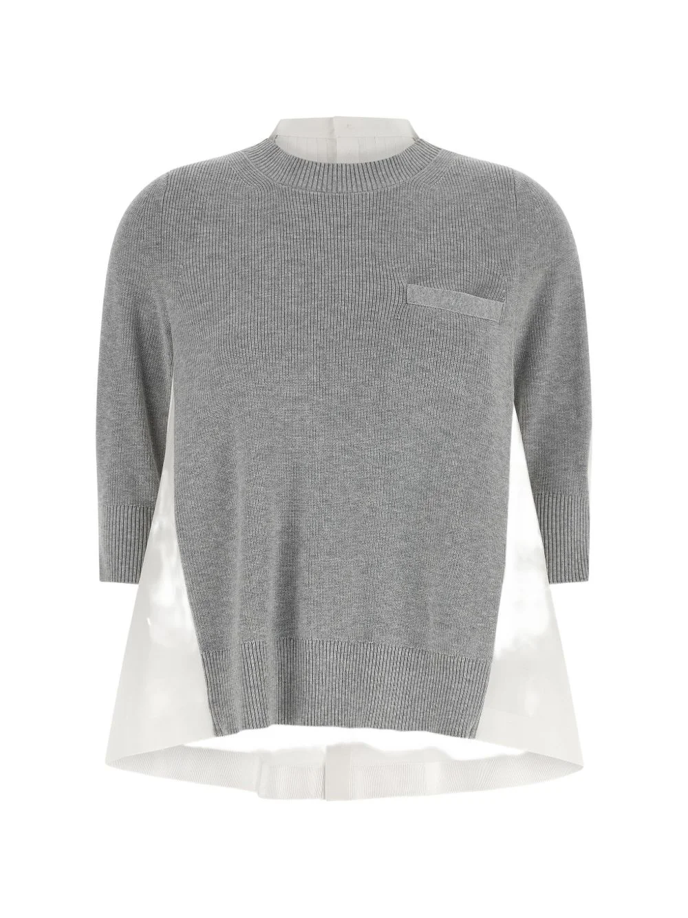 asymmetric crew-neck sweater Highlights - Grey and white - Asymmetric hem - Crew neck - Short puff sleeves - Elastic cuffs - Ruffles - Chest pocket Imported Composition Cotton 100% Washing instructions Read Manufacturer Guidelines