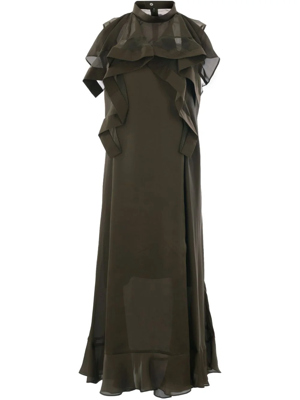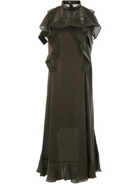 sleeveless chiffon dress Highlights - Olive green - Concealed rear zip fastening - Ruffled detailing - Mock neck - Straight hem Imported Composition Polyester 100%, Cotton 100%
