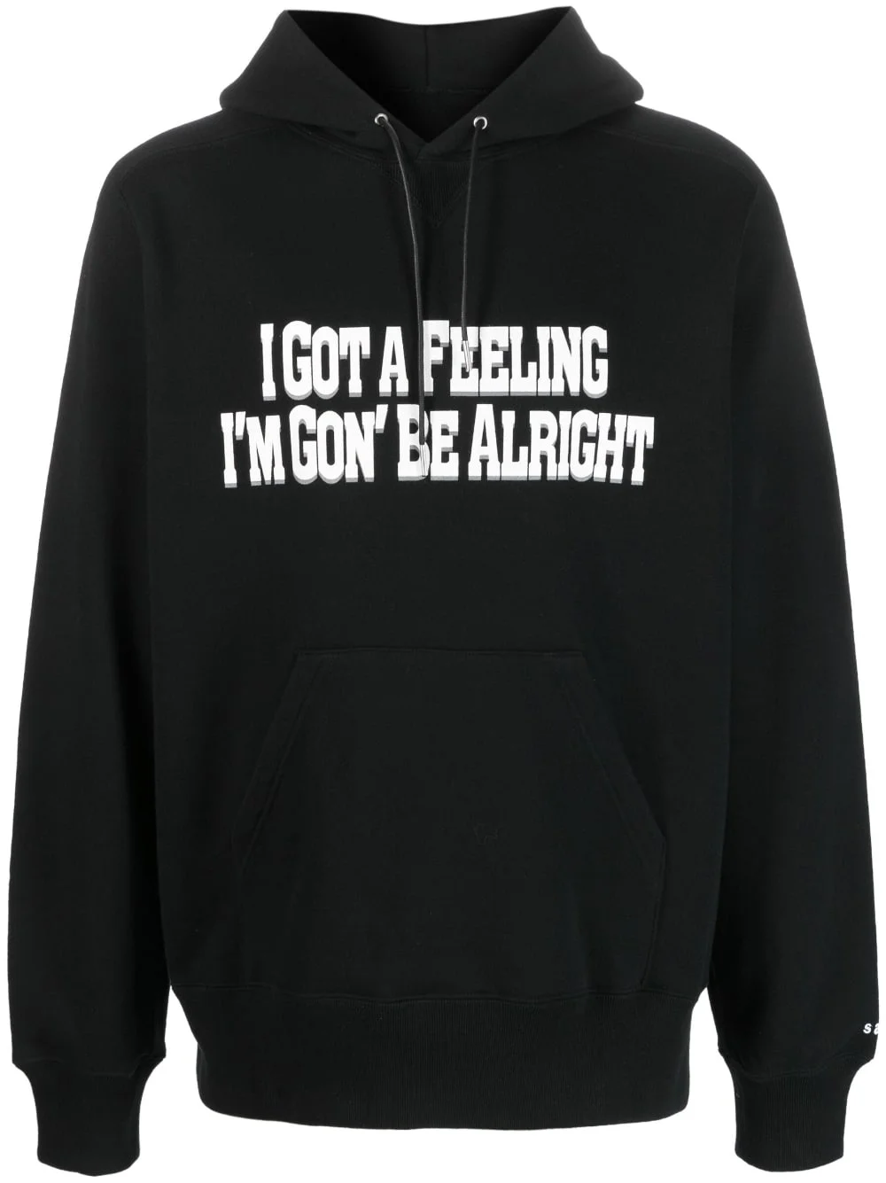 slogan-print cotton hoodie Highlights - Black - Cotton - Pullover design - Slogan print to the front - Logo print at the sleeve - Long sleeves - Slouchy drawstring hood - Front pouch pocket - Ribbed cuffs and hem - When buying this unisex item, keep in mind that it is graded in standard men's sizing. Imported Composition Cotton 100% Washing instructions Machine Wash