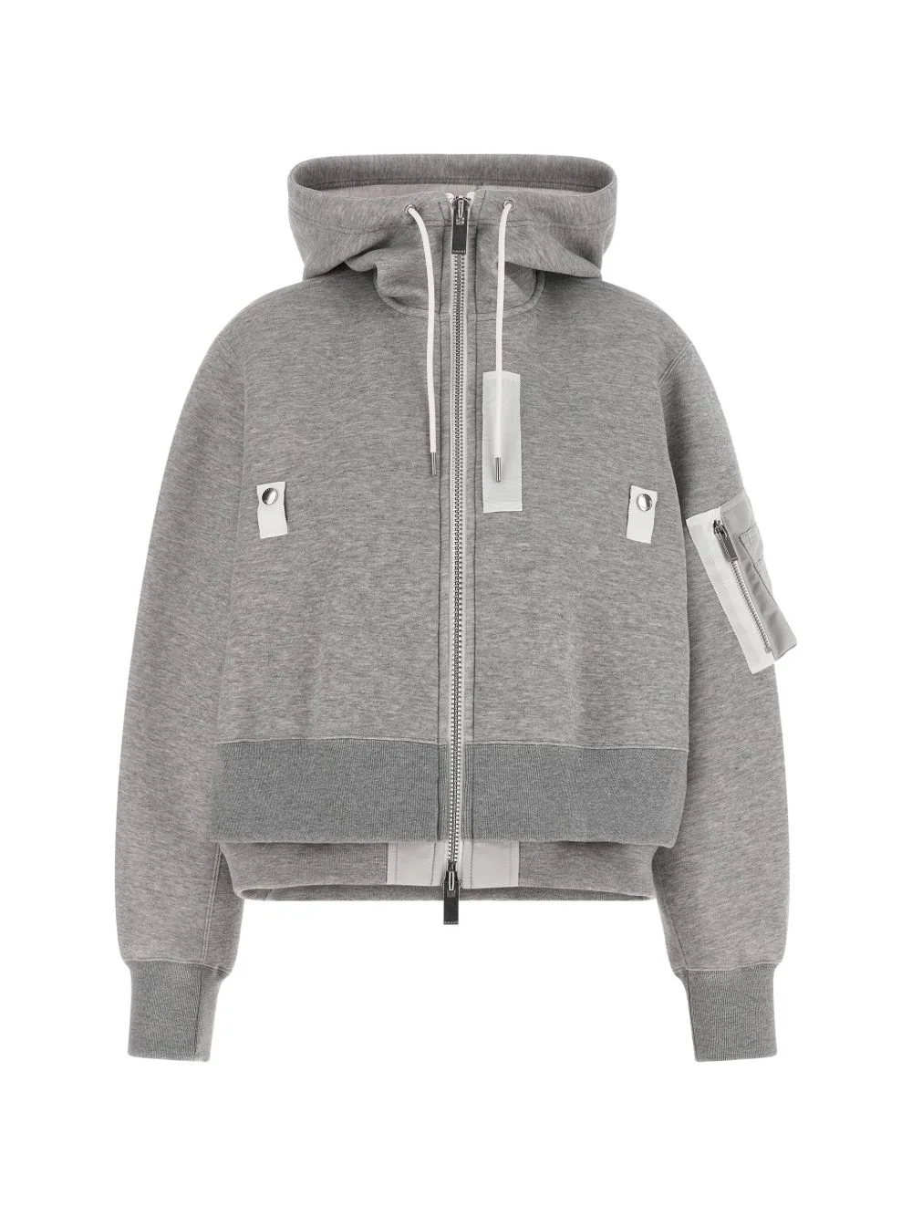 Sponge zip-up hoodie Highlights - Gray - Melange effect - Pockets - Cuffed long sleeves - Zip closure Imported Composition Cotton 62%, Polyester 38% Washing instructions Read Manufacturer Guidelines