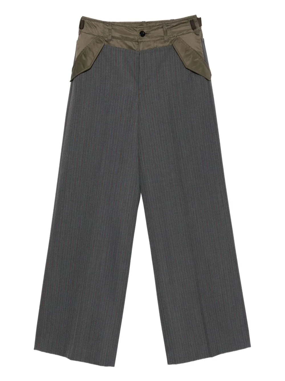 pinstripe panelled trousers Highlights - Grey - Pinstripe pattern - Panelled design - High waist - Button fly - Front flap pockets Imported Composition Nylon 100%, Polyester 55%, Wool 45% SIZE & FIT Model measurements Height 5 ft 9 in(1.76 m) Bust/Chest 31.49 in(80 cm) Hips 35.03 in(89 cm) Waist 24.8 in(63 cm) Washing instructions Read Manufacturer Guidelines