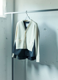 Stripe Doeskin x Wool Knit Cardigan