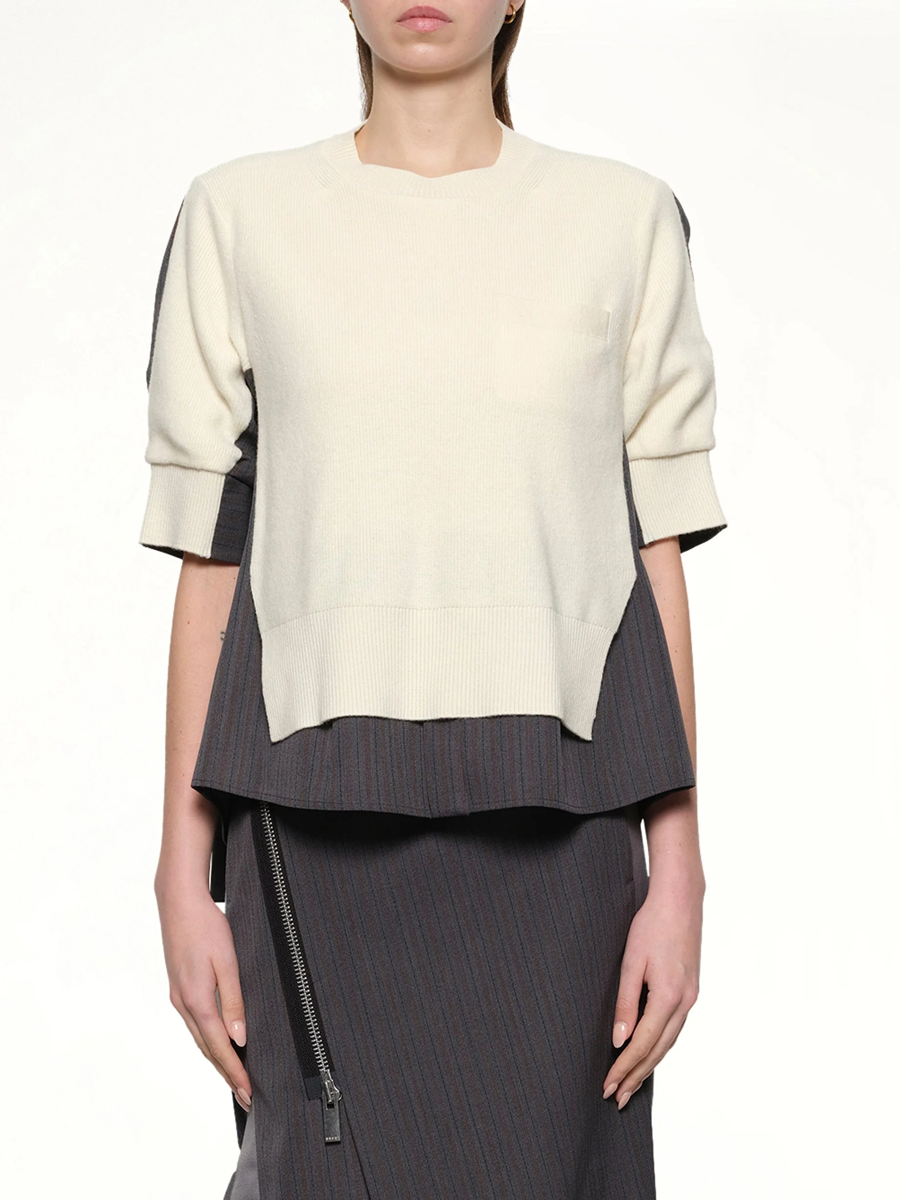 Stripe Doeskin x Wool Knit Pullover in Off White/Gray