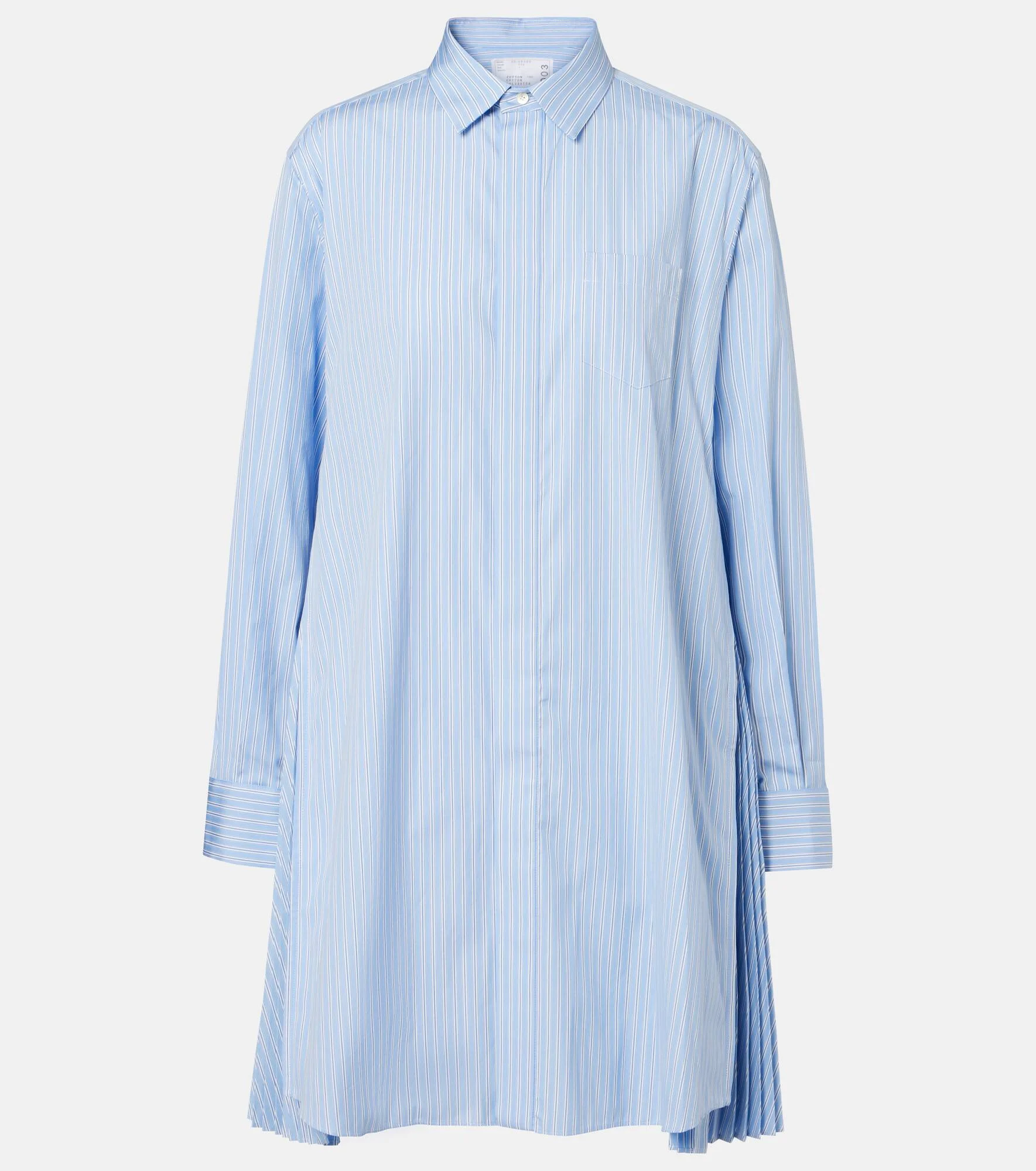 Sacai’s penchant for hybrid designs sees contrasting textures, fabrics, and techniques combined to create entirely unique and innovative styles. Crafted from striped cotton poplin, this shirt dress is cut to a mini length and features an oversized fit. Product Details - Material: 100% cotton - Care instructions: dry clean - Made in Japan - Designer color name: L/Blue Stripe - Item color: blue - Material II: 75% cotton, 25% polyester - Closure: concealed buttoned front - Collar: classic (Straight point) - Cuff: buttoned - Item number: P01066701 Size & Fit - True to size - Dropped shoulders - Oversized - Non-stretchy fabric - The model seen in the picture is 178cm-5'10" and wearing a size 1