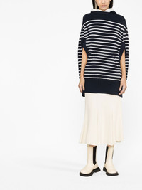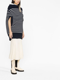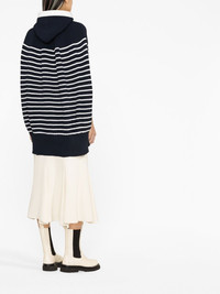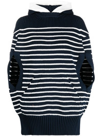 striped knitted hoodie Turning classic knitwear on its head, this striped hoodie from sacai is crafted to a cape-like silhouette with arm slits. In contrast, the chunky ribbed construction and all-over pattern keep things classic. Imported Composition Polyester 100% SIZE & FIT Model measurements Height 5 ft 10 in(1.77 m) Bust/Chest 32.67 in(83 cm) Hips 35.43 in(90 cm) Waist 23.62 in(60 cm) FittingInformation This piece fits true to size. We recommend you get your regular size Cut for a loose fit Made with a mid-weight fabric Washing instructions Dry Clean Only