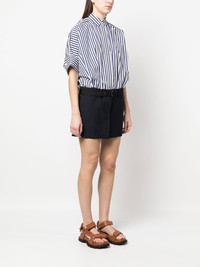 striped-panelled shirt dress navy blue milk white panelled design multi-way strap design classic collar sleeveless Imported Composition Outer: Cotton 100%, Polyester 70%, Wool 30% Lining: Polyester 100%, Cupro 100% SIZE & FIT Model measurements Height 5 ft 11 in(1.8 m) Bust/Chest 31.49 in(80 cm) Hips 36.22 in(92 cm) Waist 25.59 in(65 cm) FittingInformation This piece fits true to size. We recommend you get your regular size Designed for a loose fit at the bust and waist with a close fit on the hips Made with a mid-weight non-stretch fabric