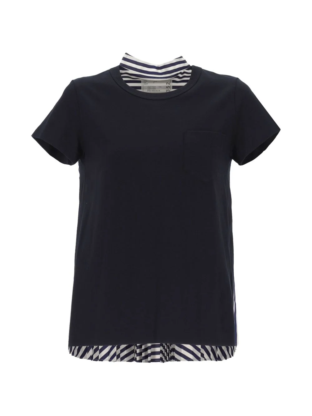 striped pleated T-shirt Highlights - Navy blue - Striped pattern - Pleated detail - Round neck - Short sleeves Imported Composition Cotton 65%, Polyester 35% Washing instructions Read Manufacturer Guidelines
