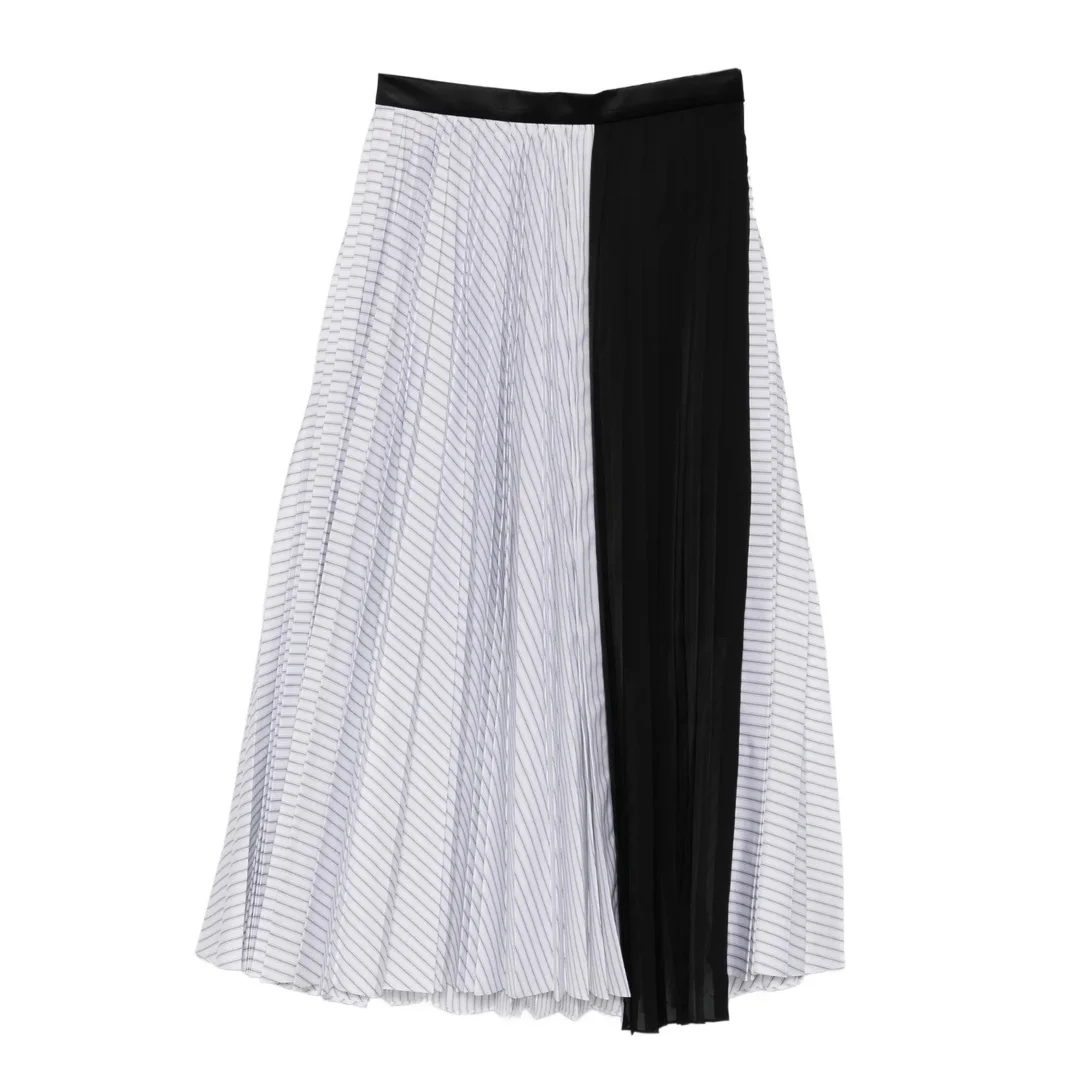 Striped cotton poplin skirt - white - striped - pleated - Outer: Cotton 75%, Polyester 25% / Lining: Cupro 100%