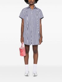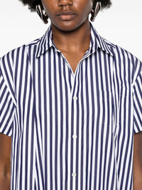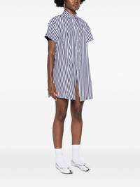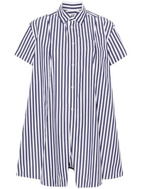 striped shirt Highlights - Navy blue/white - Cotton - Poplin texture - Vertical stripe pattern - A-line - Classic collar - Short sleeves - Chest patch pocket - Multiple slits - Thigh-length - Front button fastening Imported Composition Cotton 100% SIZE & FIT Model measurements Height 5 ft 10 in(1.77 m) Bust/Chest 34.64 in(88 cm) Hips 35.43 in(90 cm) Waist 24.8 in(63 cm) Measurement BUST 47.24 in(120 cm) LENGTH 33.07 in(84 cm) WAIST 57.87 in(147 cm) SLEEVE LENGTH 2.16 in(5.5 cm) Shoulder Width 17.32 in(44 cm) FittingInformation Designed to be unstructured, offering a loose fit throughout Made from a midweight non-stretch fabric This piece fits true to size – take your usual size