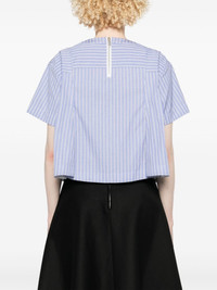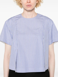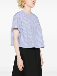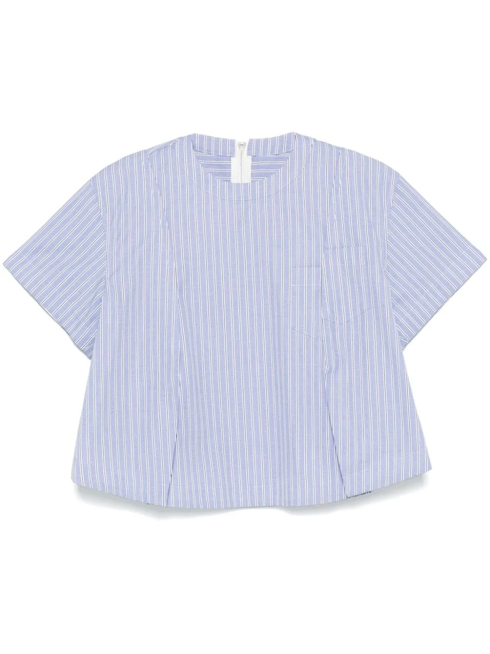 striped shirt Highlights - Blue/white - Cotton - Poplin texture - Vertical stripe pattern - Short rear zip fastening - Crew neck - Short sleeves - Two chest patch pockets - Pleat detailing - Front and rear slits - Straight hem Imported Composition Cotton 100% SIZE & FIT Model measurements Height 5 ft 9 in(1.75 m) Bust/Chest 34.64 in(88 cm) Hips 36.61 in(93 cm) Waist 26.37 in(67 cm) FittingInformation Designed to be unstructured, offering a loose fit throughout Cropped in length Made from a midweight non-stretch fabric