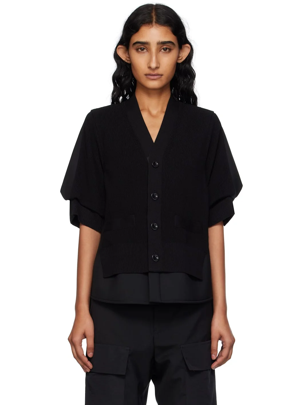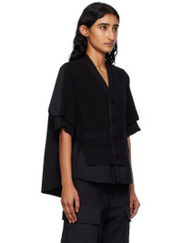 Knit cotton-blend and wool-blend bonded jersey cardigan. · Paneled and layered construction · Y-neck · Button closure · Welt pockets at waist · Partial rib-knit trim hem and cuffs · Buttoned cuffs · Knife pleats and box pleats at back yoke · Partial mesh lining Supplier color: Black Body 1: 57% cotton, 43% polyester. Body 2: 70% polyester, 30% wool. Trim: 100% polyester. Lining: 100% polyester. Made in Japan 252445F095004