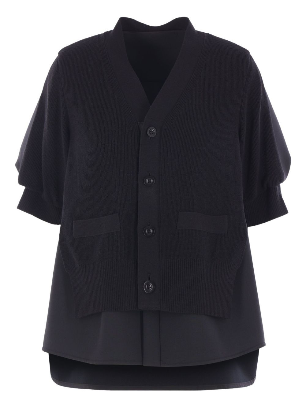 pleated-panel short-sleeve cardigan Highlights Imported Composition Cotton 57%, Polyester 43%