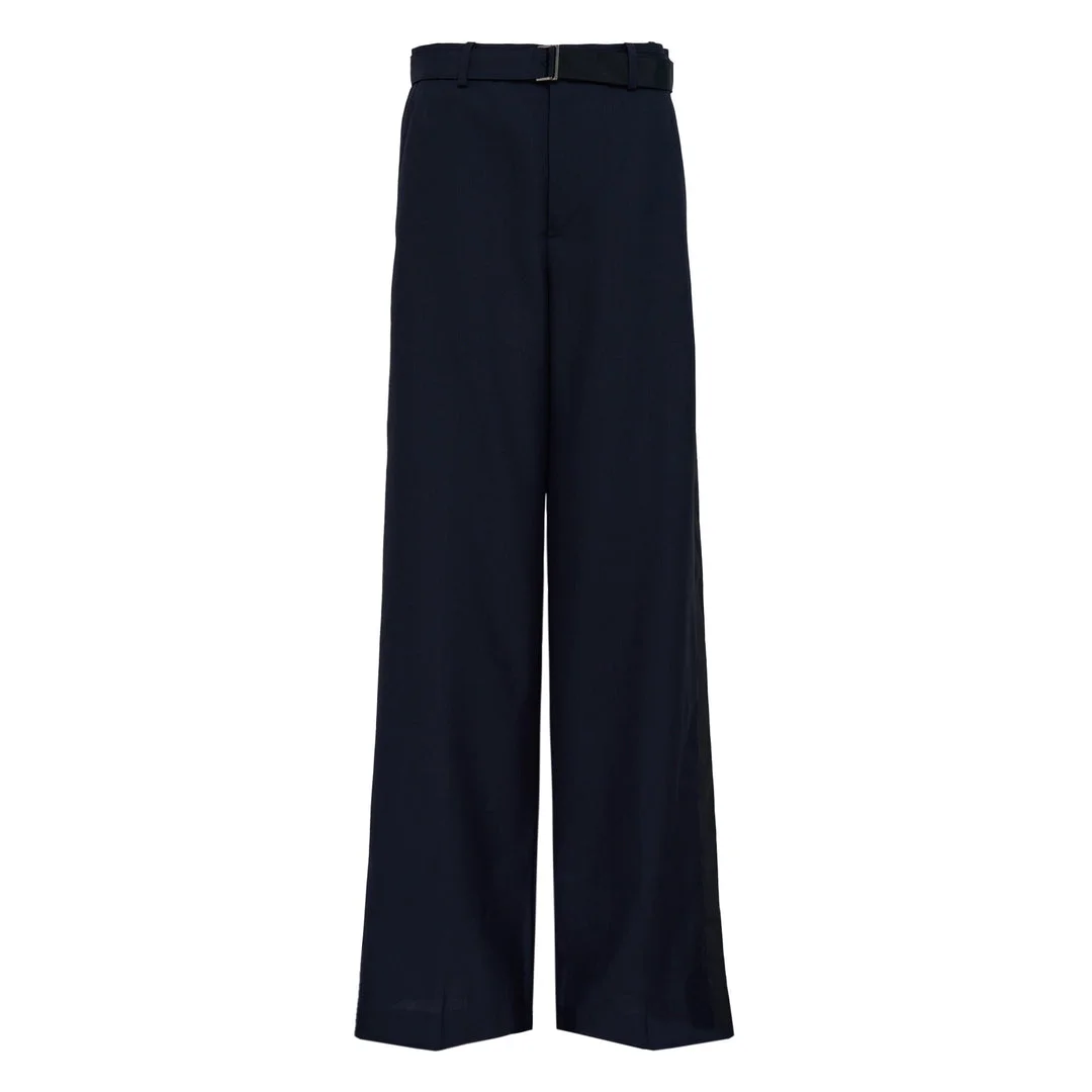 sacai Suiting Pants deliver avant-garde tailoring with the brand's signature hybrid construction and contemporary silhouette. Crafted from premium wool suiting fabric in deep navy, featuring wide-leg proportions and refined finishing details. The architectural cut and clean lines exemplify sacai's distinctive approach to modern luxury tailoring.