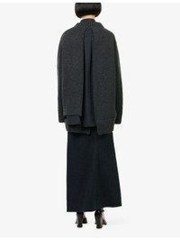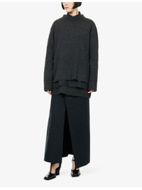 PRODUCT DETAILS - sacai wool knitted dress - 100% wool; contrast 100% polyester - Relaxed fit, pointed collar, dropped shoulders, long sleeves, ribbed trims, contrast underlayer, side slits, slit at back - Specialist dry clean only - Made in Japan - True to size - Model is 5ft 10in/1.78m and wears a size small - Midweight, non-stretch Ref: R04519961
