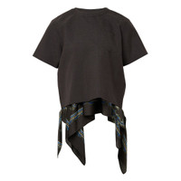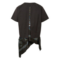 600071797BRN001 / 25-08132/00/612 - Round neckline - Short sleeves - Chest patch pocket - Contrasting paisley silk panels - Asymmetrical handkerchief hem - Suiting fabric construction - Relaxed fit The sacai Suiting x Paisley Print Pullover delivers deconstructed tailoring with the brand's signature hybrid construction. Crafted from charcoal gray suiting fabric with contrasting paisley silk panels creating an asymmetrical handkerchief hem detail. The innovative fabric combination and architectural draping showcase sacai's mastery of reimagining classic menswear silhouettes.
