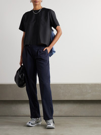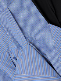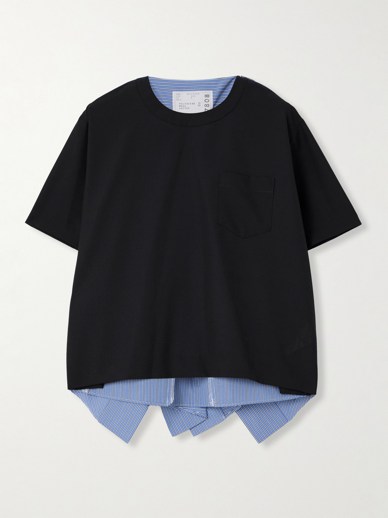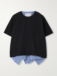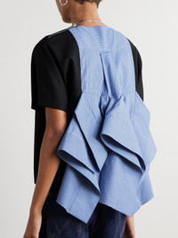 Sacai's top showcases two distinct aesthetics, offering a completely different look from the front and back. It's made from jersey to resemble a tee and has a striped poplin panel at the reverse complete with dramatic cascading ruffles.