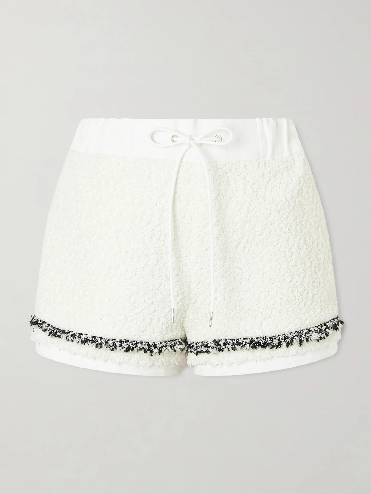 Sacai's shorts are one half of a charming co-ord. Made from boucle-tweed and threaded with a drawstring, they sit somewhere between polished and laid-back - the Japanese label loves to play with contrasts.