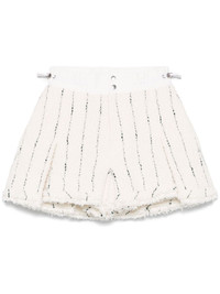 tweed shorts Highlights - White - Front press-stud and zip fastening - Elasticated drawstring waistband - Two side slit pockets - Two rear jetted pockets Imported Composition Outer: Nylon 67%, Cotton 33% Lining: Cupro 100% SIZE & FIT Model measurements Height 5 ft 10 in(1.78 m) Bust/Chest 33.46 in(85 cm) Hips 36.22 in(92 cm) Waist 23.22 in(59 cm) FittingInformation Designed for a loose fit, offering comfort and movement when worn Adjust this piece’s waistband to your preference using the drawstring Made from a midweight non-stretch fabric Washing instructions Dry Clean Only