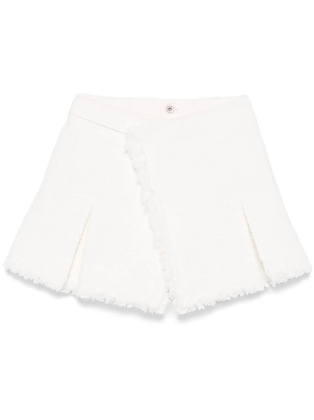 tweed skort Highlights - White - Concealed front button fastening - Fully pleated - Two side inset pockets - Inner shorts Imported Composition Lining: Cupro 100% Outer: Cotton 100% SIZE & FIT Model measurements Height 5 ft 10 in(1.78 m) Bust/Chest 33.46 in(85 cm) Hips 36.22 in(92 cm) Waist 23.22 in(59 cm) FittingInformation Designed for a relaxed, roomy fit Made from a midweight non-stretch fabric Washing instructions Dry Clean Only