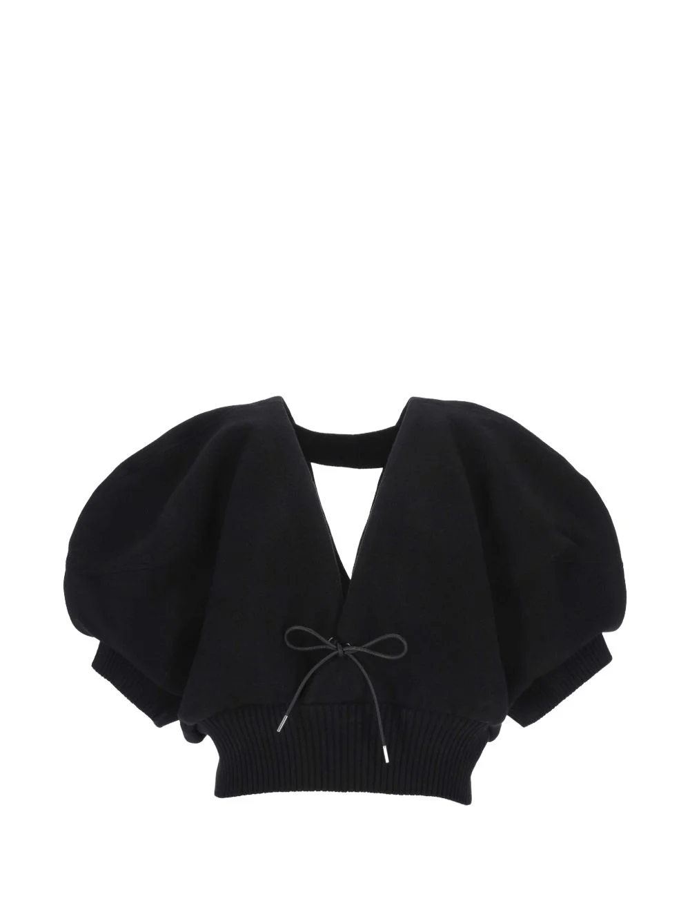V-neck blouse Highlights - Black - Ribbed hem - Short sleeves - Tie detail - V-neck Imported Composition Cotton 64%, Polyester 22%, Cashmere 11%, Polyurethane 2%, Nylon 1% Washing instructions Read Manufacturer Guidelines