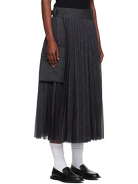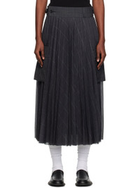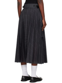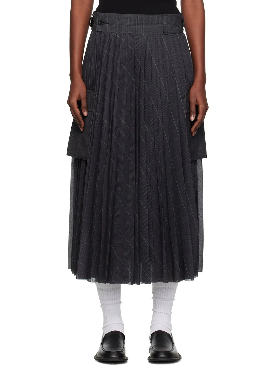 Plain-woven midi skirt. · Pleats and check pattern throughout · Wrap construction · Button closure at wool twill waistband · Belt loops · Flap and patch pockets · Adjustable cinch tab at sides · Partial cupro satin lining Supplier color Gray Body: 100% polyester. Trim: 100% wool. Lining: 100% cupro. Made in Japan 252445F092004
