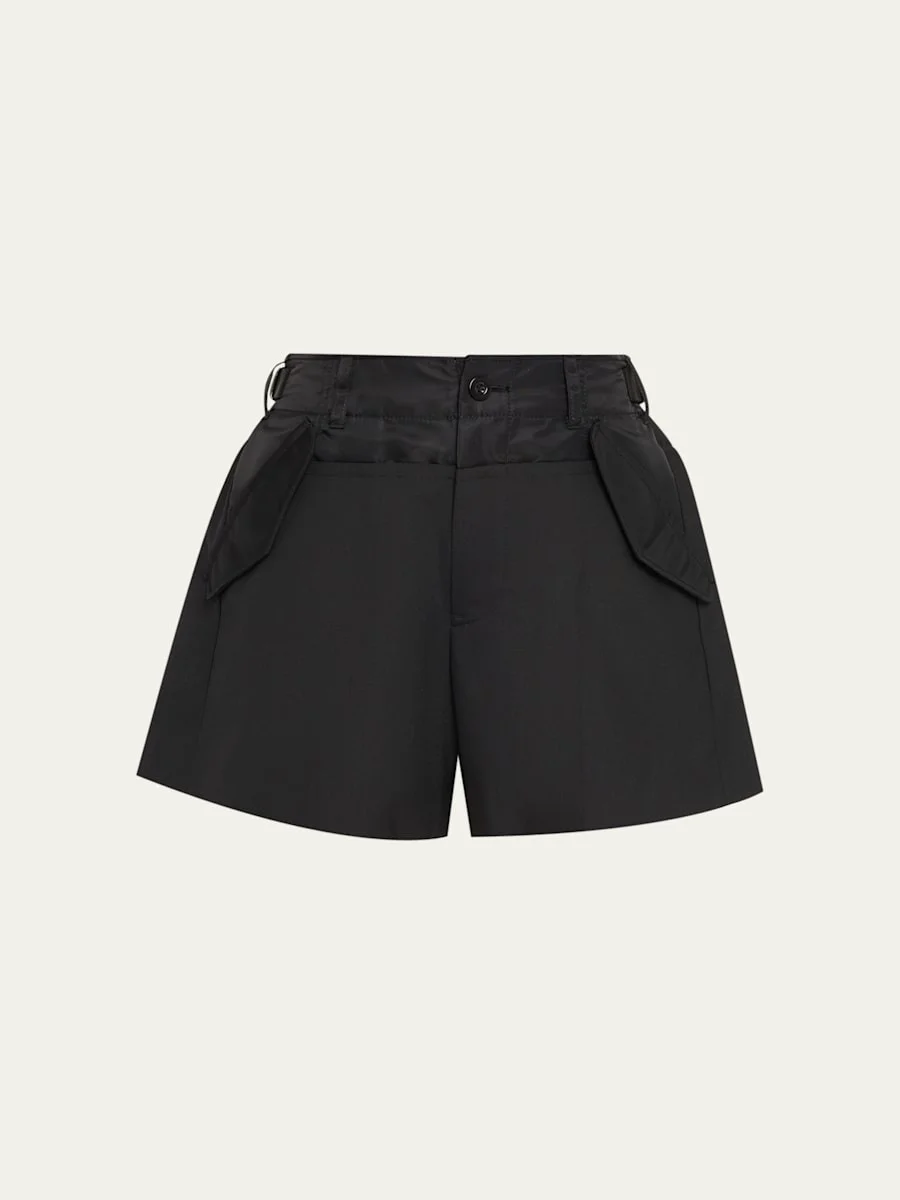 These SACAI hybrid shorts are crafted in suiting fabric for relaxed refinement Sits high on the hips Side flap pockets Buttoned back welt pockets Wide-leg fit Button/zip fly; belt loops Polyester/wool Dry clean Made in Japan Online Inquiries: BGS21_BAABK| Store Inquiries: #5067206