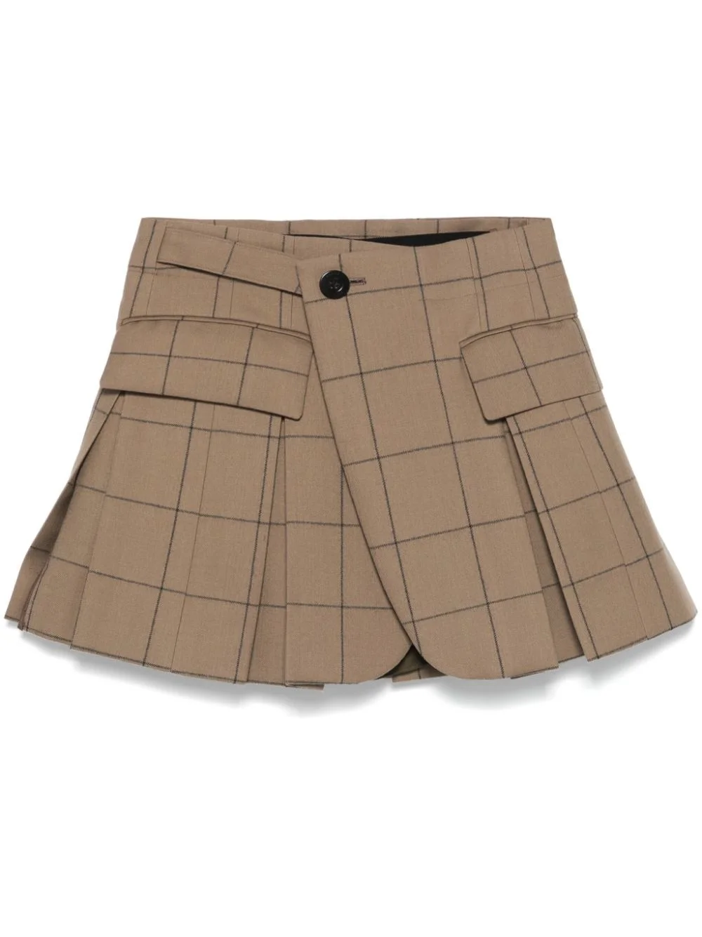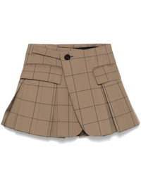 windowpane-print shorts Highlights - Light brown - Wool - Twill weave - Windowpane print - Wrap design - Front button fastening - Fully pleated - Two front flap pockets - Inner shorts - Full lining - Flared hem - Thigh-length Imported Composition Outer: Wool 100%, Nylon 100% Lining: Cupro 100% SIZE & FIT Model measurements Height 5 ft 8 in(1.72 m) Bust/Chest 31.88 in(81 cm) Hips 34.64 in(88 cm) Waist 23.62 in(60 cm) Measurement FRONT RISE 11.41 in(29 cm) INSIDE LEG 2.36 in(6 cm) HIPS 38.58 in(98 cm) WAIST 29.92 in(76 cm) FittingInformation Designed for a loose fit, offering comfort and movement when worn Made from a midweight non-stretch fabric Washing instructions Dry Clean Only