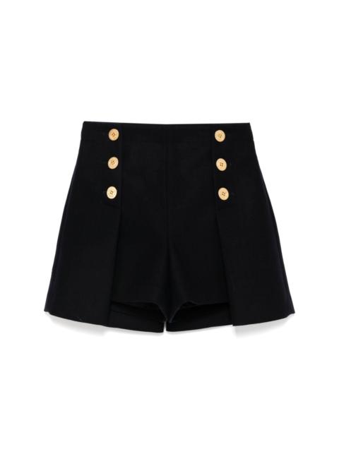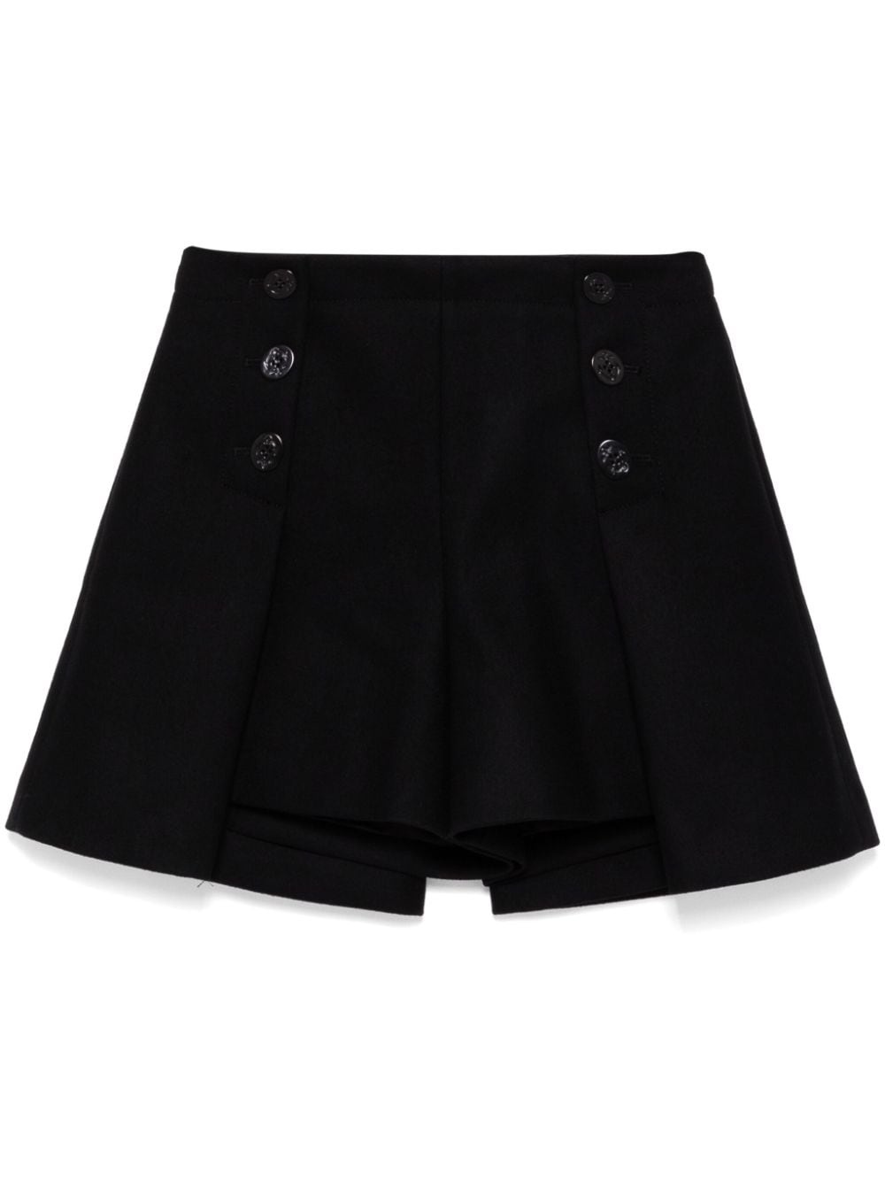 pleated tailored short Highlights - Black - Wool - Side button fastening - Pleat detailing - Two side inset pockets - Panel detailing - High-low hem - Thigh-high Imported Composition Lining: Cupro 100% Outer: Wool 100% SIZE & FIT Model measurements Height 5 ft 10 in(1.77 m) Bust/Chest 30.31 in(77 cm) Hips 33.85 in(86 cm) Waist 25.19 in(64 cm) FittingInformation Designed for a relaxed, roomy fit Made from a midweight non-stretch fabric