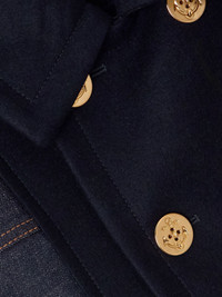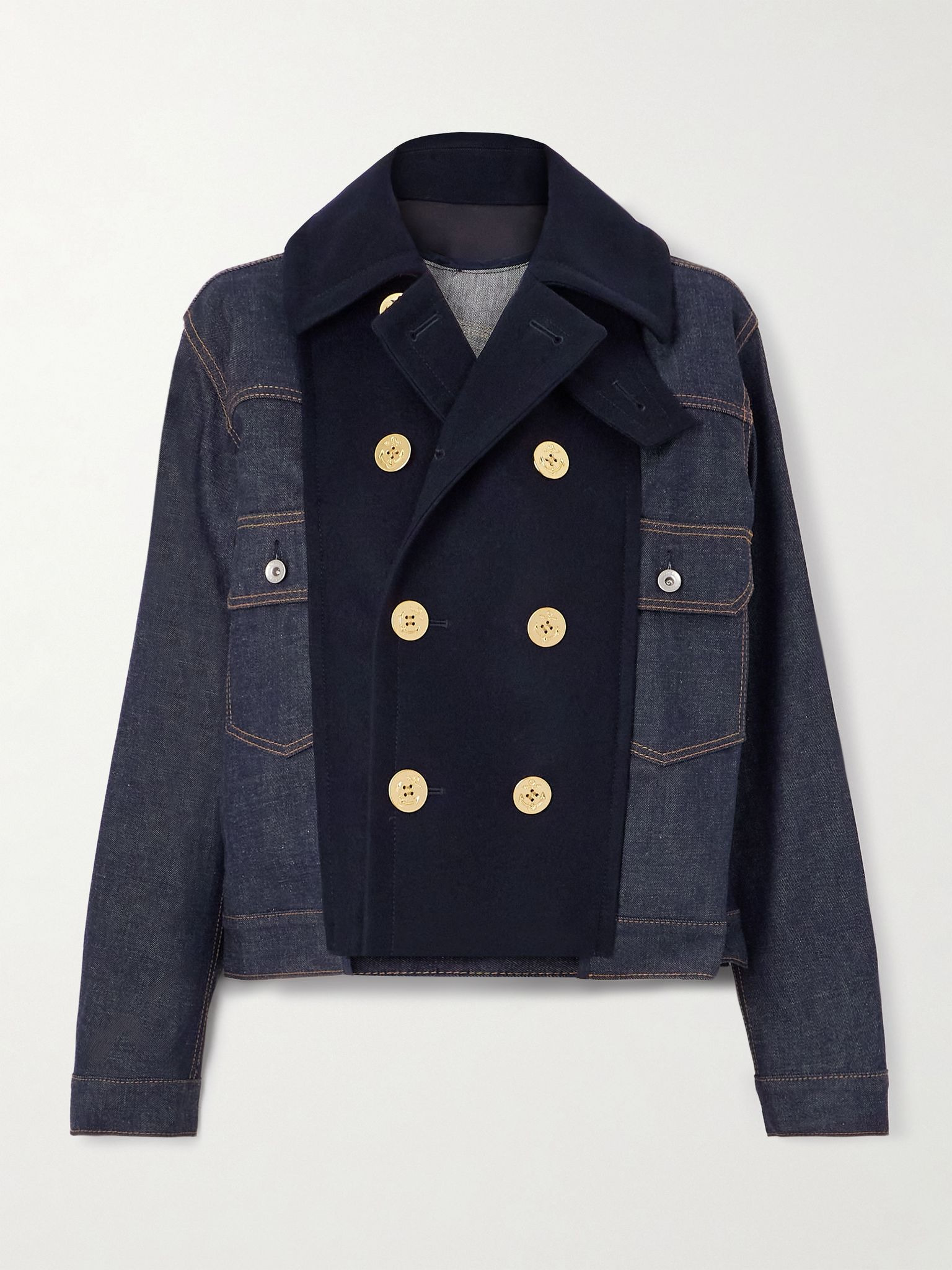 Sacai is renowned for fusing contrasting styles in such innovative ways. This hybrid denim jacket has a double-breasted wool panel with a neck tab and sharp collar that lends a smart, unexpected touch to the classically utilitarian design. Size & Fit - Fits true to size, take your normal size - Intended for a boxy fit, cut to be worn loose - Mid-weight, non-stretchy denim with non-stretchy fabric panels - Model is 177cm/ 5'10" and is wearing the designer's size 2 Model measurements: - Bust: 80cm/ 31.5" - Waist: 60cm/ 23.5" - Hip: 89cm/ 35" Details & Care - Dark-blue denim, navy wool - Button fastenings through double-breasted front - 100% cotton; trim: 100% wool; lining: 100% cupro - Partially lined - Dry clean
