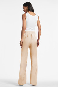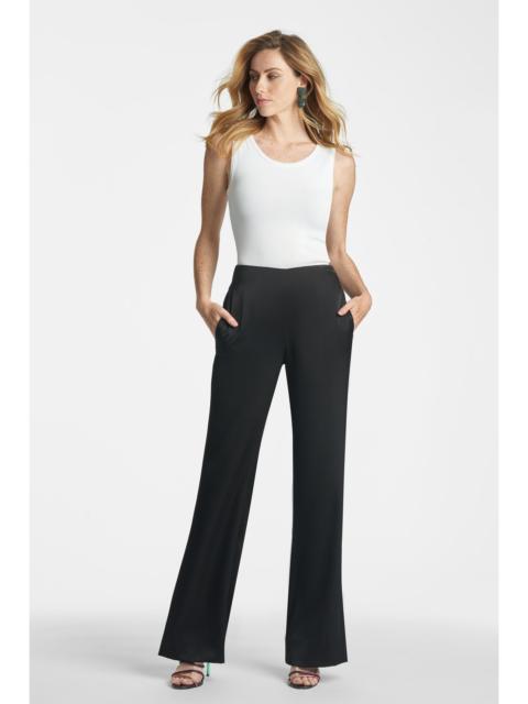 Alli is the ideal evening pant. An easy, chic wide-leg trouser shape is featured in our satin crepe for an amazing drape. The flat front pant has concealed elastic at the back for a more comfortable fit. Perfect back to your favorite "date-night" tops or and knits. Details: - Model is 5'11" wearing size 2 - 32" Inseam - Side Zipper - Satin Crepe - 100% Polyester - Imported - Style #F223P06-250