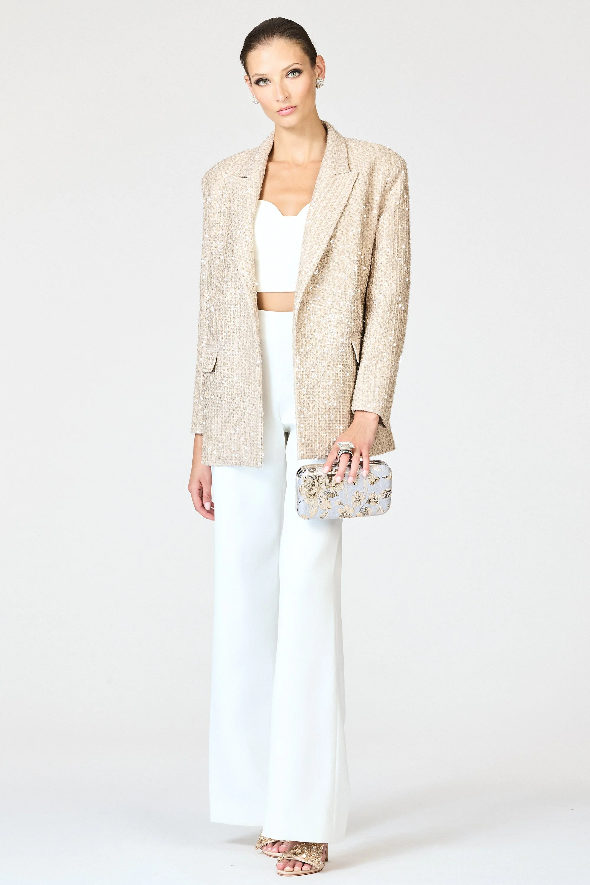 Alli is the ideal evening pant. An easy, chic wide-leg trouser shape is featured in our satin crepe for an amazing drape. The flat front pant has concealed elastic at the back for a more comfortable fit. Perfect back to your favorite "date-night" tops or office looks. Details: - Model is 5'10" wearing size 2 - 32" Inseam - Side Zipper - Satin Crepe - 30% Polyester, 68% Polyethylene, 2% Polyurethane - Imported - Style # F251B05-103