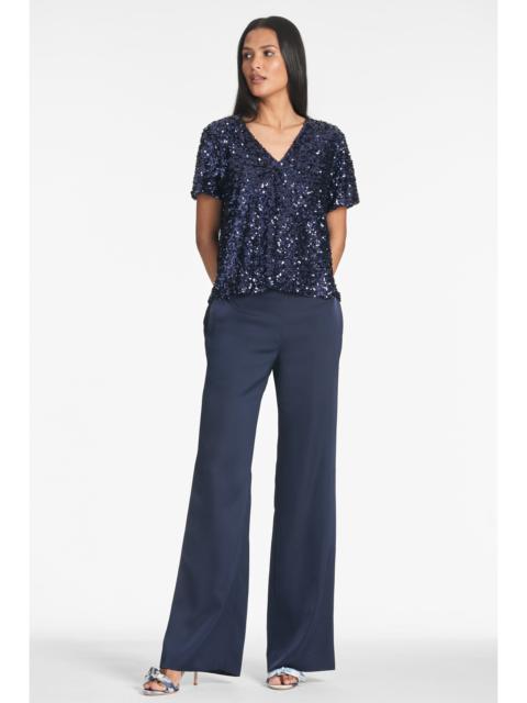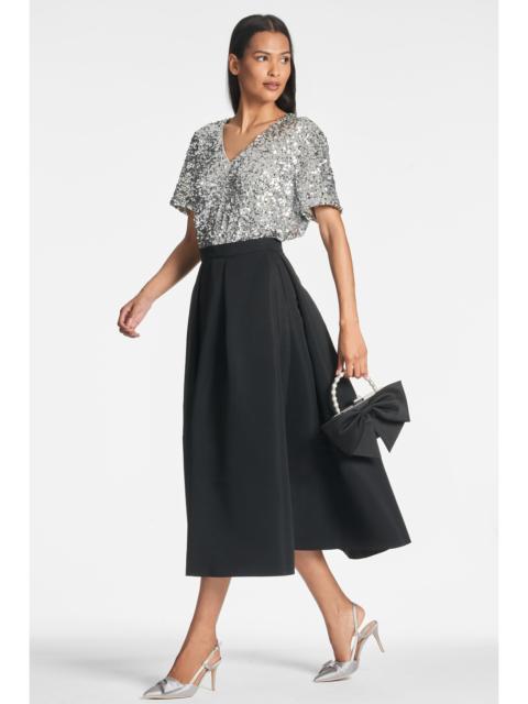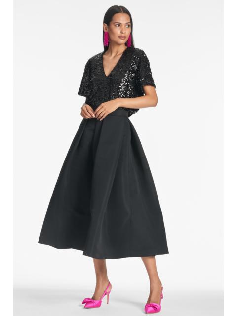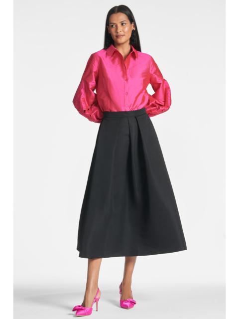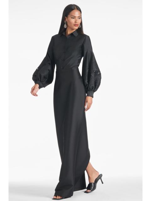The Astor Top is a fashion essential that adds a unique touch to any wardrobe. It features an elegant, dramatic embroidered sleeve and princess seams for a flattering and refined fit. Its classic collar creates a timeless style that looks great for any occasion, and a romantic alternative to basic blouse. *This blouse runs full, if you want a closer fit we suggest sizing down. Details: - Model is 5'11 wearing a size S - 24" Long - Front Button Closure - Taffeta - 100% Polyester - Imported - Style #R241T06-001
