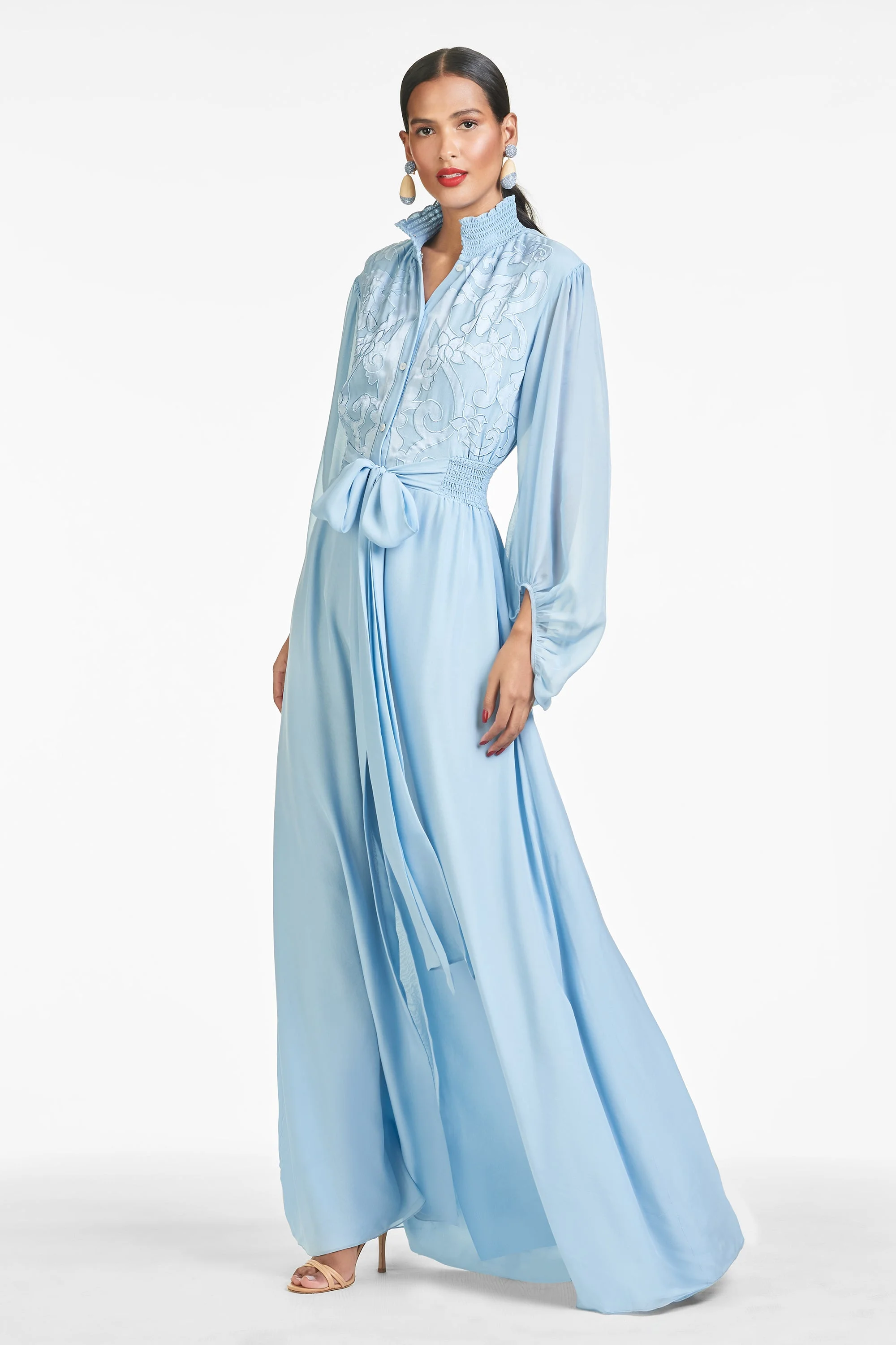 Online Exclusive What they say is true: you catch more bees with honey. Beatrix is our effortless and unapologetic beauty. She is 100% silk with embroidery details at the bodice and a chic self-tie at the waist. The collapsed crescent sleeve and high collar add to the elevated sophisticated aesthetic of the dress. Details: - Model is 5'11" Wearing A Size 2 - Full-Length, 60" from top of shoulder to bottom hem - Front Buttons - Viscose Georgette - 100% Silk - Imported - Style #F241G50F-455