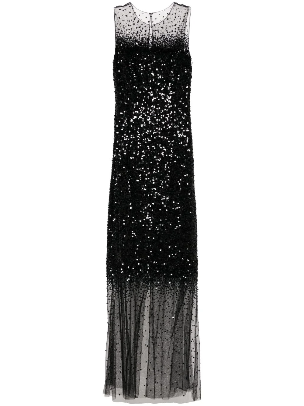 Candida gown Highlights - Black - Stretch-design - Semi-sheer construction - Concealed rear zip fastening - Sequin design - Crew neck - Sleeveless - Straight hem - Maxi Imported Composition Polyester 95%, Spandex/Elastane 5% SIZE & FIT Model measurements Height 5 ft 10 in(1.77 m) Bust/Chest 31.49 in(80 cm) Hips 35.43 in(90 cm) Waist 25.19 in(64 cm) FittingInformation Designed for a close fit throughout The dart stitching adds structure and a closer fit in the torso of this piece Made from a midweight non-stretch fabric, this piece offers minimal elasticity when worn Washing instructions Dry Clean Only