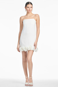 Meet Corbin, our latest little white that exudes sweet sophistication. Designed with thin straps and a figure-skimming silhouette, this mighty mini is effortless yet unforgettable. The finishing touch? A dreamy cascade of hand-placed rosettes along the trim. Details: - Model is 5'10" wearing size 2 - Length of Garment, 33" from top of shoulder to bottom hem - Back Zipper - Full Lining - No Pockets - Light Stretch Crepe - 100% Polyester - Imported - Style # S251B02-103