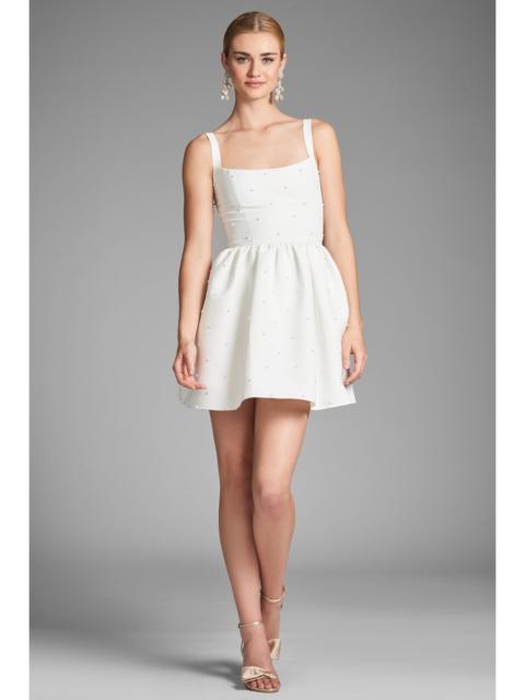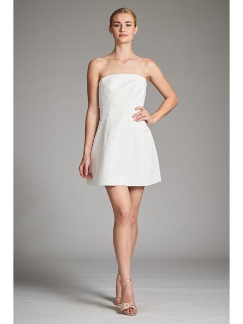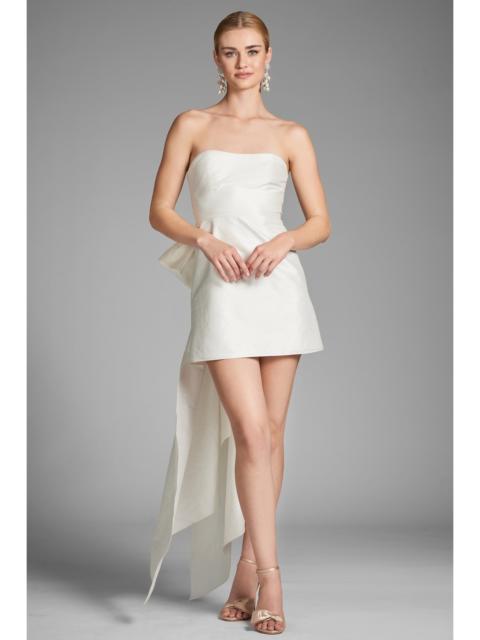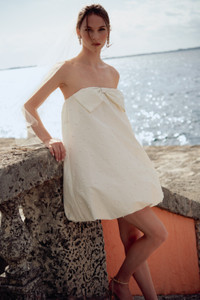 Add some fun to your wedding weekend looks with this LWD. Between the pearl embellishments and oversized bow, this bubble hem mini checks all the boxes. The best part? You can re-wear her with a jean jacket and a pair of sandals summer after summer. Details: - Model is 5'11" wearing a size 2 - 32" Long - Side Zipper - Dupioni - 100% Polyester - Imported - Style #T241B12-103