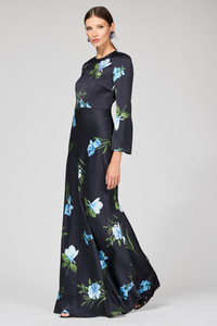 Alex is a gown who knows who she is: elegant, timeless, and chic. This long-sleeve, satin crepe dress is in our Night Sky Blue Oculata print is lit at the bodice with fine iridescent sequins to highlight the featured floral. As always, our prints are exclusive to Sachin&Babi and created by our design team, ensuring you will not see them anywhere other than in our Collection. Details: - This Is Intended To Be A Full-Length Gown - Model is 5'11" Wearing A Size 2 - Length of Garment, 61 1/2" from top of shoulder to bottom hem - Back Zipper - Half Lined - Attached Belt - No Pockets - Printed Satin Crepe - 100% Polyester - Imported - Style #S251G11-416