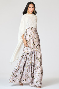 Introducing our Embellished Emmy Scarf in Ivory. Delicate and dramatic, she’s crafted from 100% silk chiffon and finished with a touch of hand-applied beading along the edges. Whether draped over the shoulders or wrapped at the neck, Emmy adds movement, modesty, and a dash of sparkle to any evening look. Details: - 91.5" Long - 26" Wide - 100% Silk - Imported - Style #R261J07-103