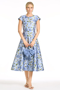 Expertly designed, our Jackie dress is a timeless and sophisticated tea-length fit and flare with pockets, featuring pleats at the front for subtle movement. Made from our luxurious mikado fabric, this occasion dress showcases a twilight print, complete with elegant cap sleeves and a rounded neckline. Suitable for both daytime and evening events, this dress is simply perfect for any occasion. As always, our prints are exclusive to Sachin&Babi and created by our design team, ensuring you will not see them anywhere other than in our Collection. Details: - Model is 5'10" Wearing A Size 2 - Tea-Length, 48" from top of shoulder to bottom hem - Back Zipper - Full Lining - Pockets - Printed Mikado - 100% Polyester - Imported - Style # S261D02-495