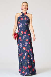 The Laurant is the definition of understated glamour. Designed with a sleek halter neckline that fastens softly at the back, it gives way to cascading tails that add fluidity and just the right hint of drama. The silhouette frames the face and highlights the collarbone, offering a modern, sophisticated take on sensuality. The body of the dress drapes like a dream, falling effortlessly at the hip. As always, our prints are exclusive to Sachin&Babi and created by our design team, ensuring you will not see them anywhere other than in our Collection. Details: - This Is Intended To Be A Full-Length Gown - Model is 5'10" wearing a size 2 - Full length, 61 1/2" from shoulder to bottom hem - Back Zipper - No pockets - Printed Satin Crepe - 100% Polyester - Imported - Style # R262G21-418